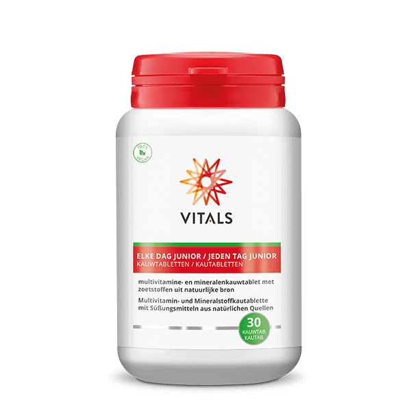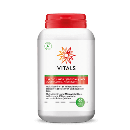 Jeden Tag ist Junior eine Kautafel in Form eines Elefanten mit Erdbeergeschmack, das speziell für Kinder aus 3 Jahren entwickelt wurde. Jeden Tag zeichnet sich Junior in Zusammensetzung, Dosierung und Aufnahme aus. Die Kau -Tablette enthält fast alle die gleichen Substanzen mit hoher Qualität wie jeden Tag für Erwachsene, aber dann sind die Dosen an die Bedürfnisse von (jungen) Kindern angepasst. Beispielsweise enthält eine Tablette nicht weniger als 15 mcg Vitamin D3 (lose Vitamin -D -Tropfen sind daher nicht mehr erforderlich). Und es gibt 60 mg Magnesium und 120 mg Calcium aus einer natürlichen Quelle. Kurz gesagt, jeden Tag wird Junior den Vergleich mit dem multisischen Multi -Multi -Vergleich vergehen!