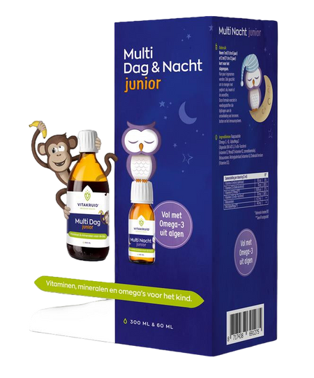 Voor uw kind wilt u natuurlijk het allerbeste. Met die insteek gebruikt Vitakruid in de Multi Dag & Nacht Junior uitsluitend nutriënten met de hoogste biologische beschikbaarheid. Op deze manier ondervindt uw spruit optimaal effect van het brede palet aan nutriënten in deze formule. Bovendien garanderen we u dat de gebruikte vormen binnen dit product een veganistische oorsprong hebben, duurzaam zijn en aan de meest recente veiligheidseisen voldoen. Een supplement voor de toekomst van kind én planeet!