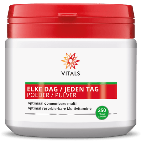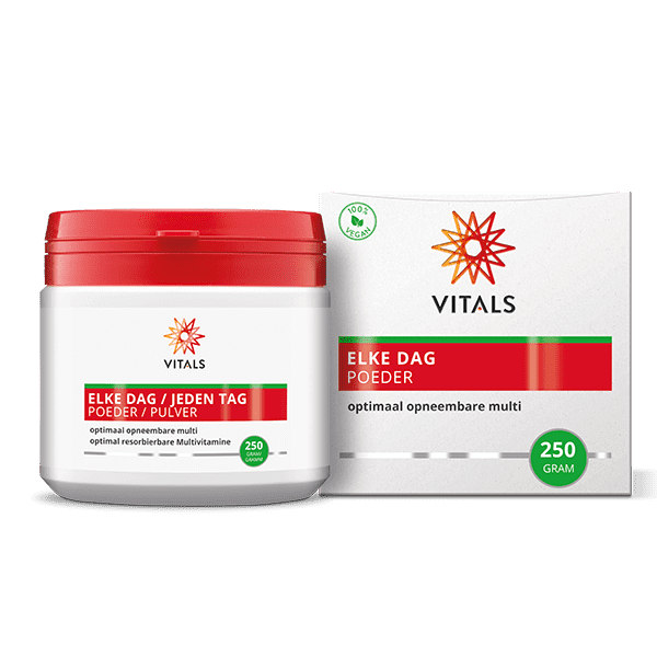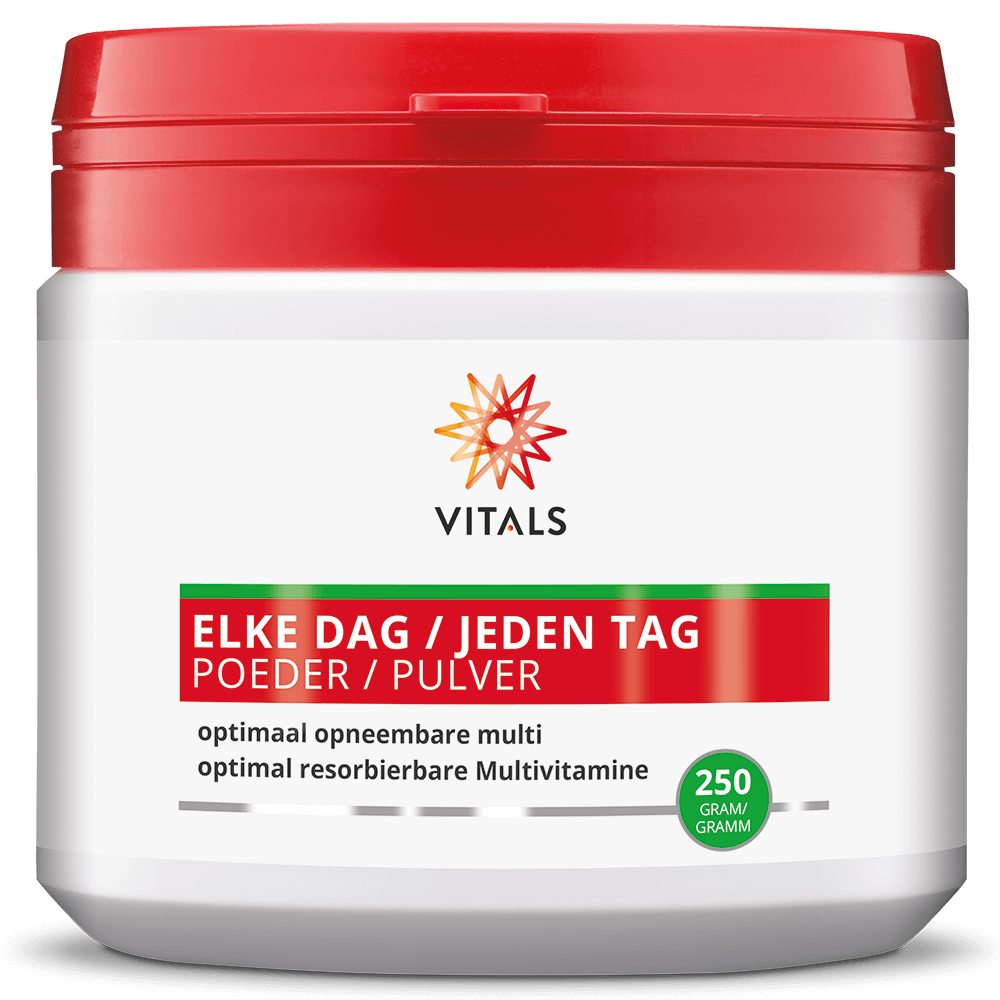 De meeste multi’s in poedervorm bestaan voor een (groot) deel uit suikers en/of bevatten kunstmatige zoetstoffen om de smaak te verbeteren. Het unieke van Elke Dag Poeder is dat de smaak van de vitaminen en mineralen geneutraliseerd wordt door natuurlijke, ongeraffineerde inuline, een prebiotische vezel die van origine lichtzoet is. Het product bevat verder geen suiker, zoetstoffen, synthetische geur-, kleur- en smaakstoffen of conserveringsmiddelen.