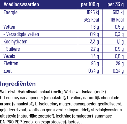 | Voedingswaarden per dosering (1 maatschep à 33 gram) | |