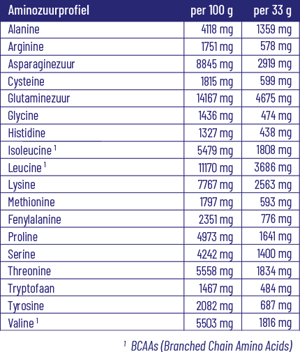 | Aminozuurprofiel per dosering (1 maatschep à 33 gram) | |