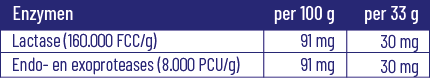 | Enzymen per dosering (1 maatschep à 33 gram) | |